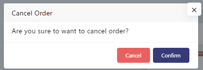 - Once, Order cancellation modal appears, click on Confirm to cancel the order.
