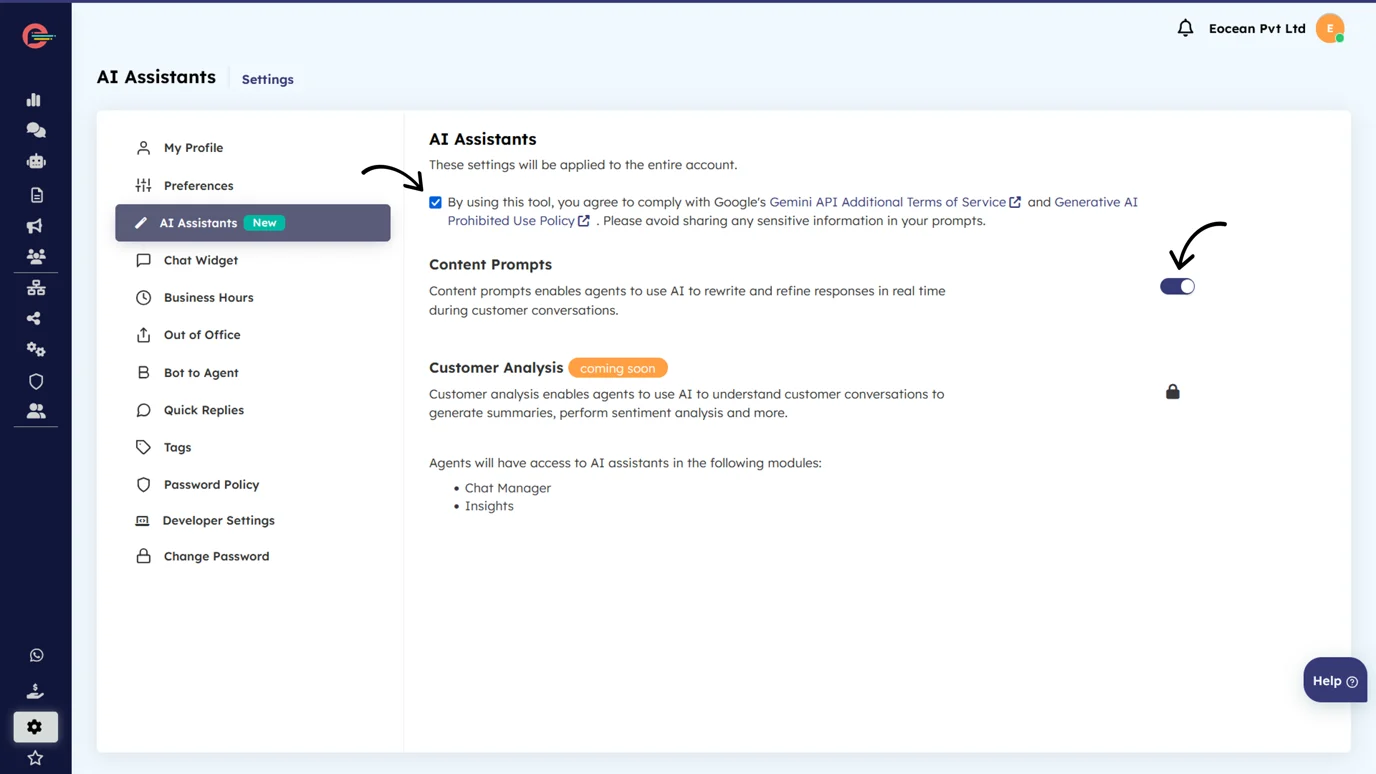How to enable AI-Assistant from the Settings Page